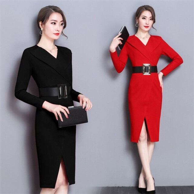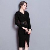 ワンピース レディース 新作 長袖 膝丈ワンピース Aラインワンピース オシャレ 通勤 リゾート 着痩せ ブラック 20代30代40代