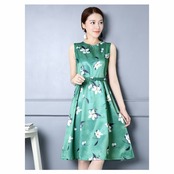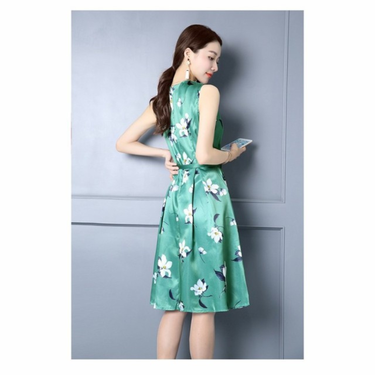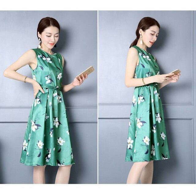 ワンピース レディース 春夏 ワンピース ドレス 花柄ワンピース 膝丈 きれいめ 結婚式 ノースリーブ マキシワンピース ブルー ひざ丈 オシャレ