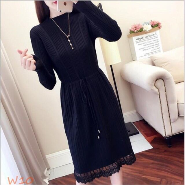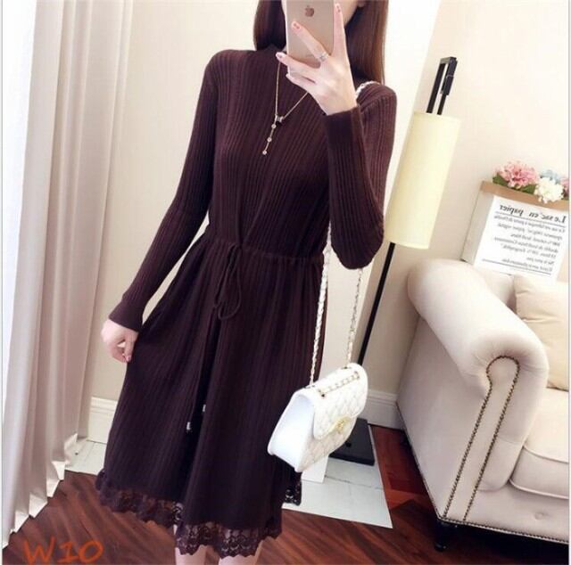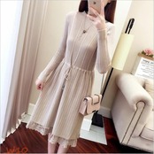 ワンピース レディース 秋 20 チュニック 二次会 膝丈 長袖 おしゃれ 通勤 体型カバー きれいめ ニット 可愛い 着痩せ ニットワンピース Aライン