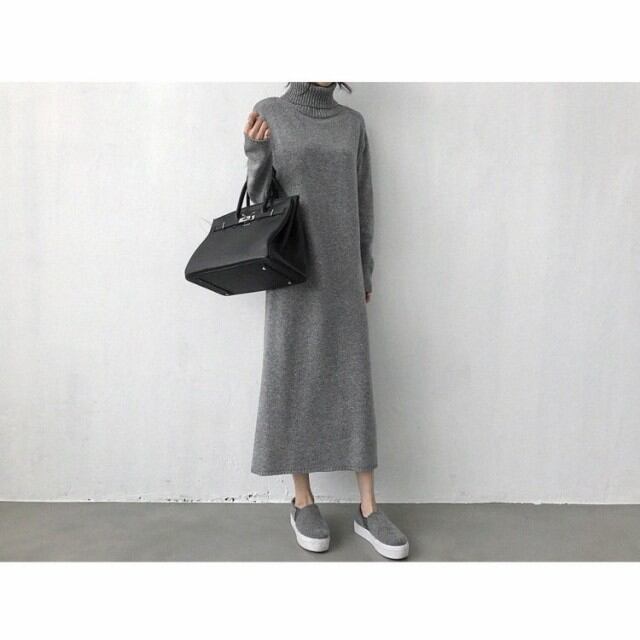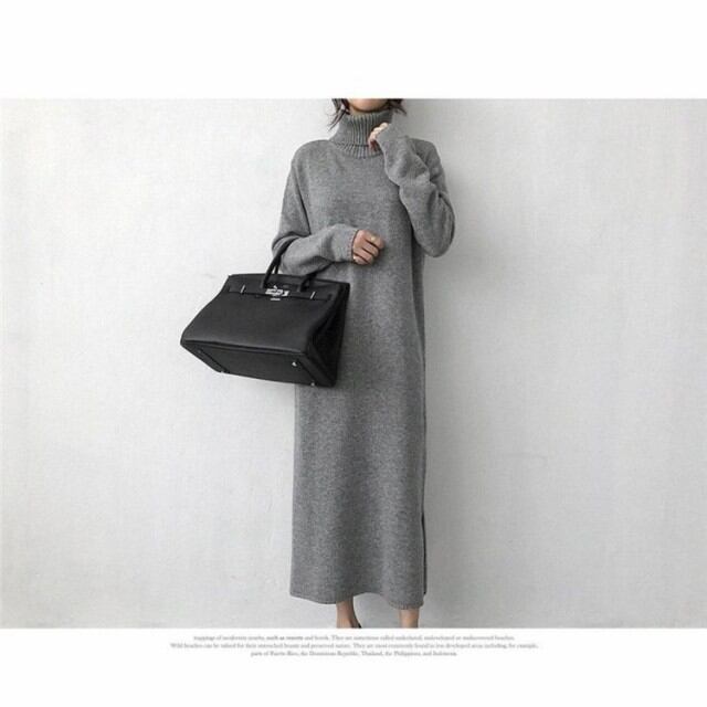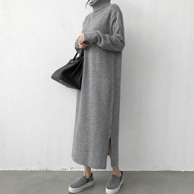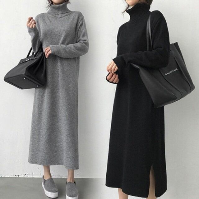 連携キーワード:ニットワンピース レディース 40代 秋冬 ロング丈 ニットワンピース きれいめ ハイネック 長袖 ニットワンピース 無地 結婚式ドレス 通勤 着痩せ ゆったり 2色