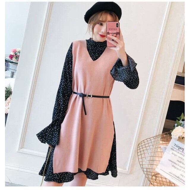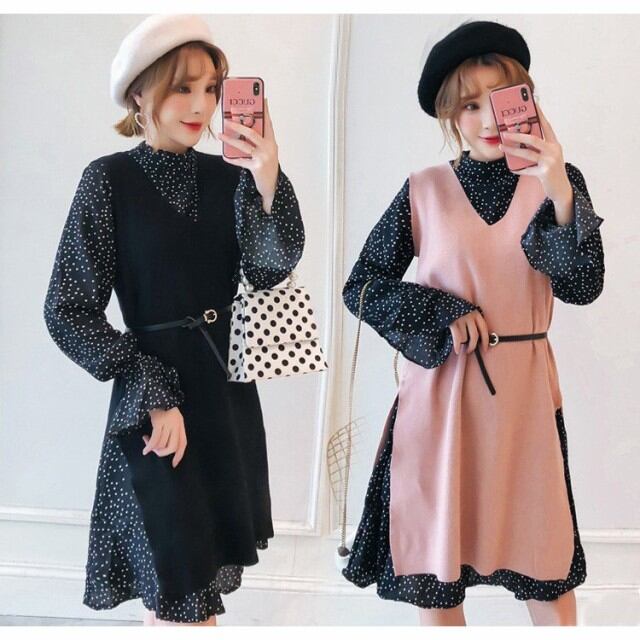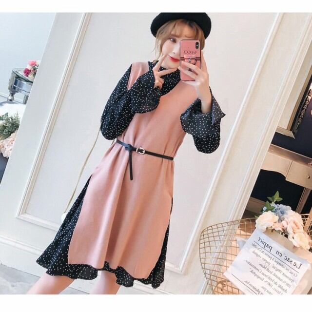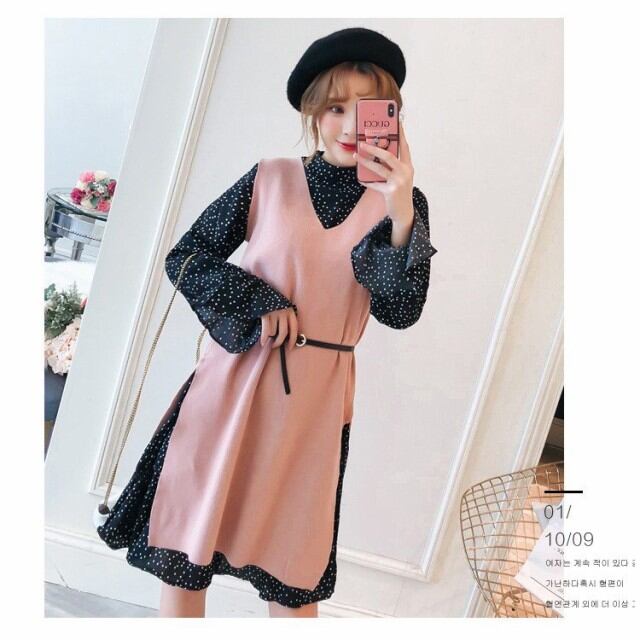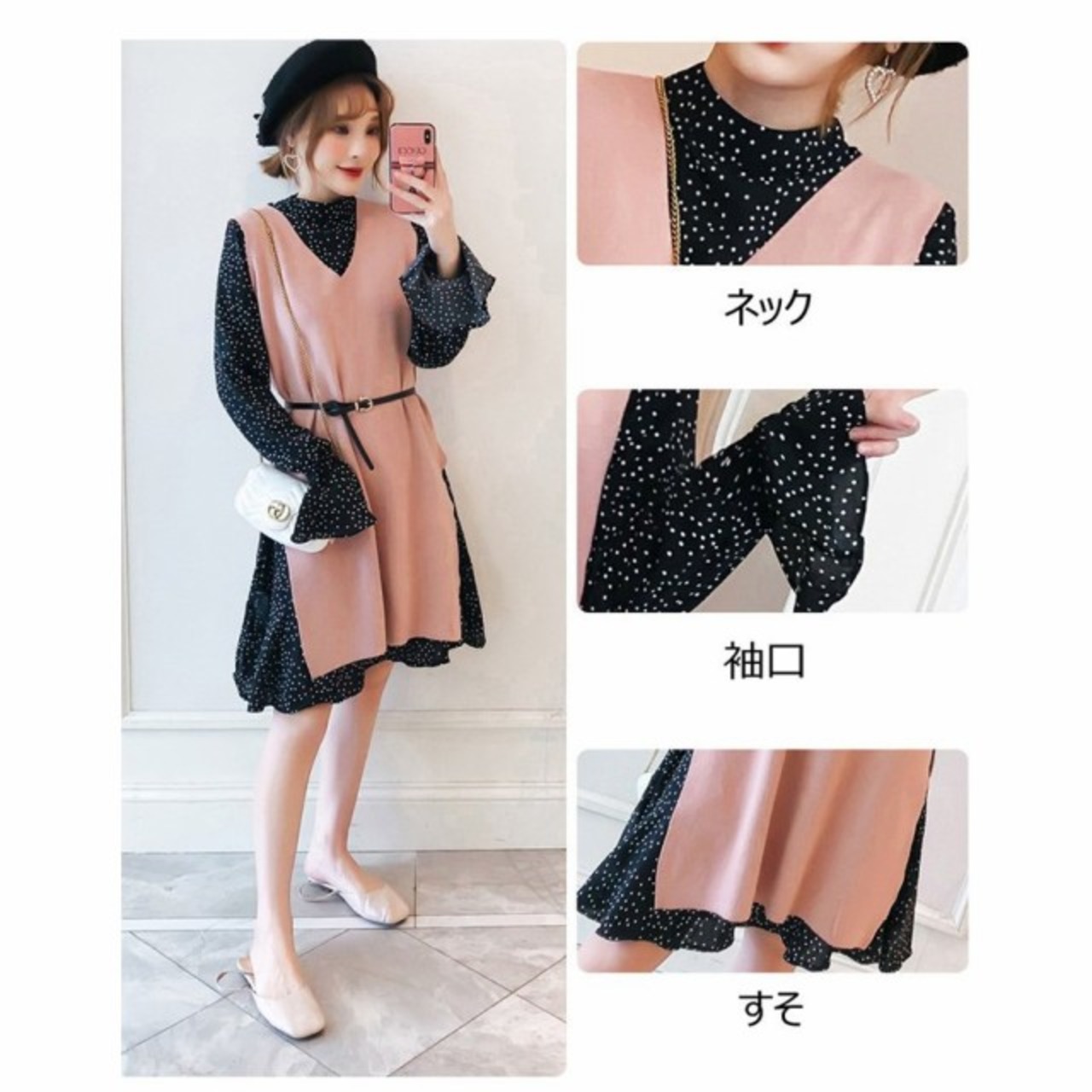 連携キーワード:ワンピース レディース 秋冬 膝丈ワンピース きれいめ 大きいサイズ ドット柄 シフォン 長袖 2点セット ワンピース マタニティー 妊婦服 上品 オシャレ