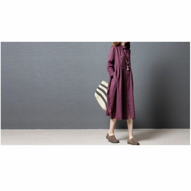 ワンピース ストライプ カジュアル 秋 ひざ丈 シャツワンピ レディース