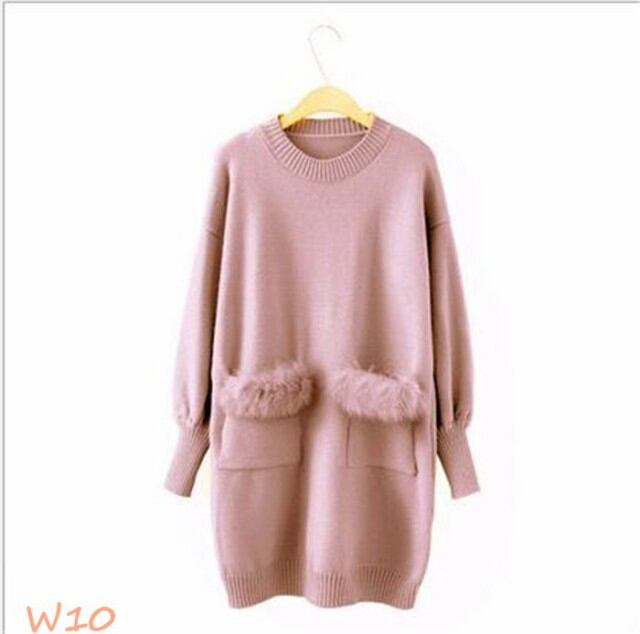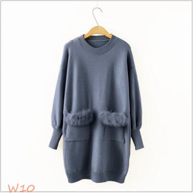ニットワンピース レディース ワンピース 結婚式 オフィス 秋 ファー付き 体型カバー ニット 長袖 冬 チュニック ショート丈 無地 カットソー 通勤