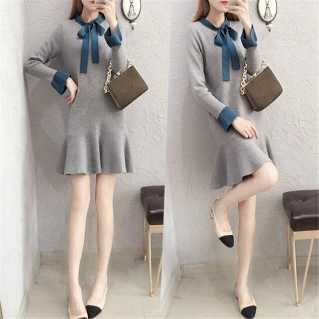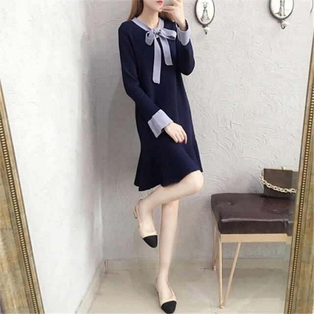 ワンピース レディース 秋冬 膝丈ワンピース きれいめ 長袖 ニット 切り替え 膝丈ワンピース 通勤 オシャレ 着痩せ 大人可愛い 新作 2色