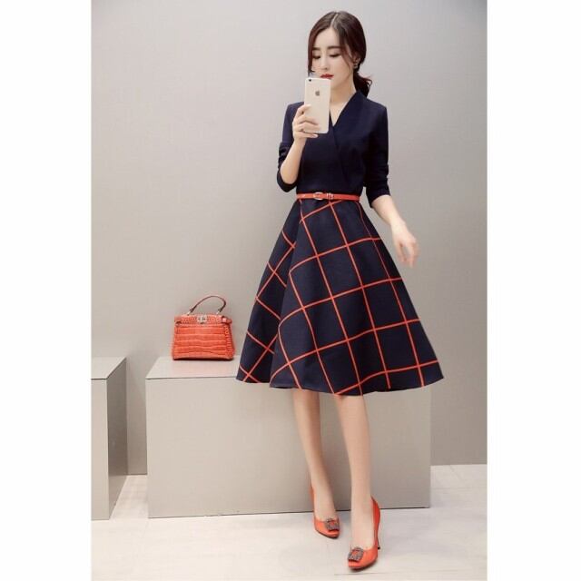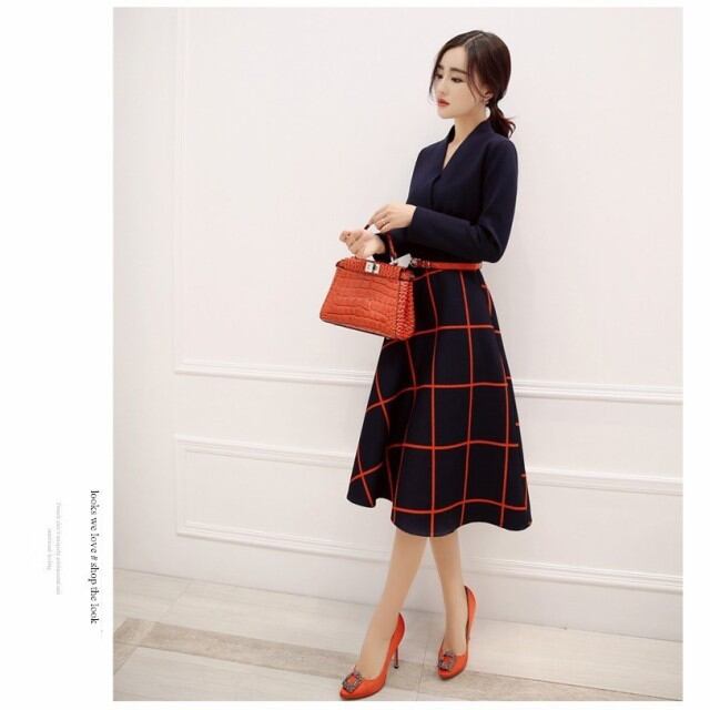 連携キーワード:ワンピース ロング丈 膝丈 Vネックワンピース チェック レディース きれいめ 着痩せ 通勤 OL Aライン 結婚式 パーティー ドレス 大人 春秋 上品