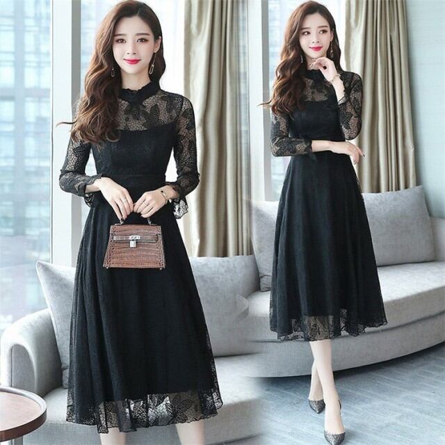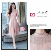 連携キーワード:ワンピース レディース 40代 秋 マキシ丈ワンピース きれいめ 長袖 レースドレス 上品 マキシ丈ワンピース 結婚式 ドレス 通勤 オシャレ 着痩せ ロング丈 3色