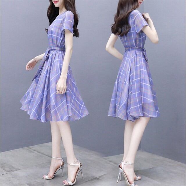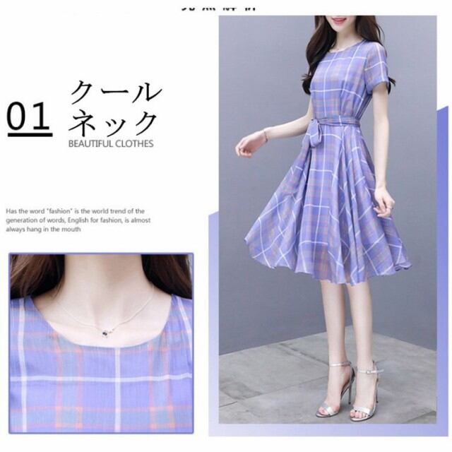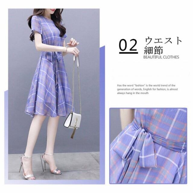 ワンピース レディース 春夏 膝丈ワンピース 通勤 OL きれいめ チェック柄 膝丈ワンピース 結婚式 ドレス オシャレ 上品 2018 夏
