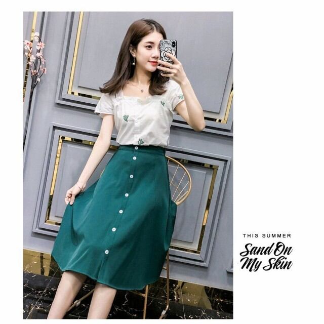 連携キーワード:ワンピース レディース きれいめ 春夏 ワンピース 2点セット 半袖 膝丈スカート サボテン刺繍 フレア 大きいサイズ 着痩せ オシャレ 大人可愛い 新作