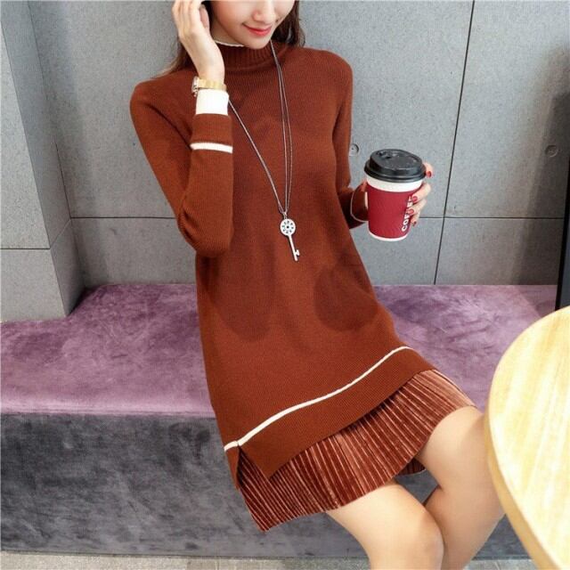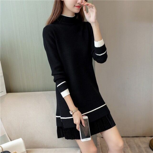 連携キーワード:ニットワンピース レディース 40代 秋冬 きれいめ ショート丈ワンピース 長袖 ニットワンピース プリーツ切り替え 結婚式ドレス ミニ丈 ニットセーター 通勤 着痩せ 4色