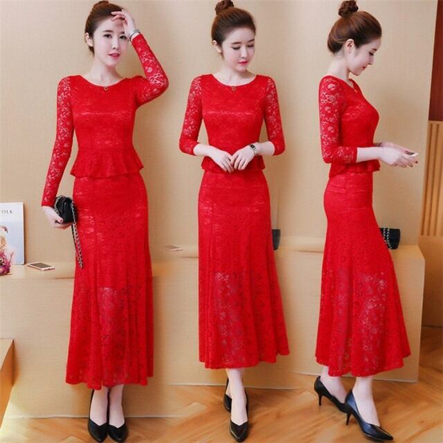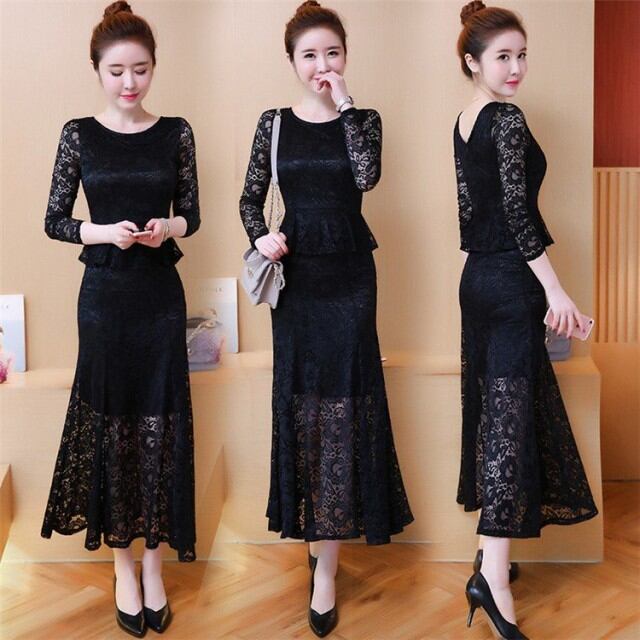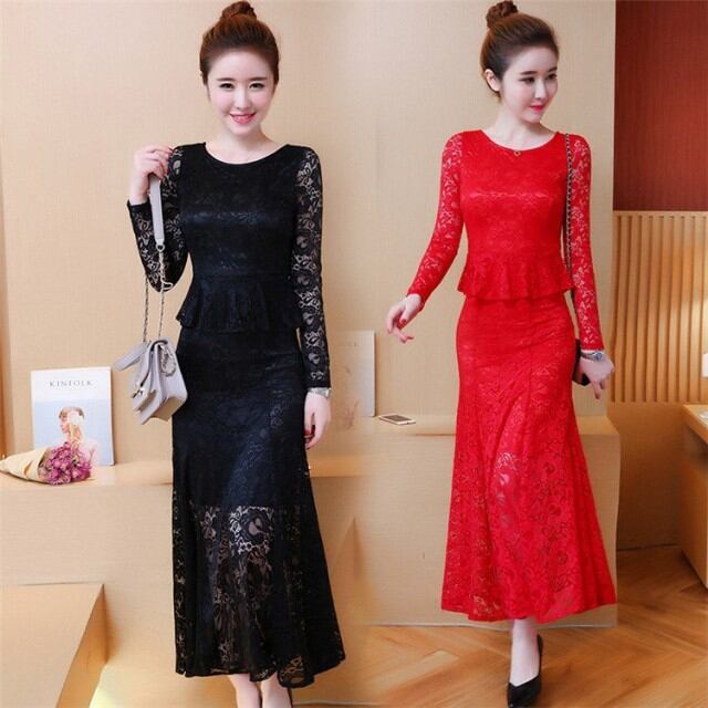 ワンピース レディース 春秋 ロングワンピース きれいめ 長袖 レースドレス マキシ丈ワンピース 結婚式ドレス パーディ オシャレ 着痩せ ロング丈 2色