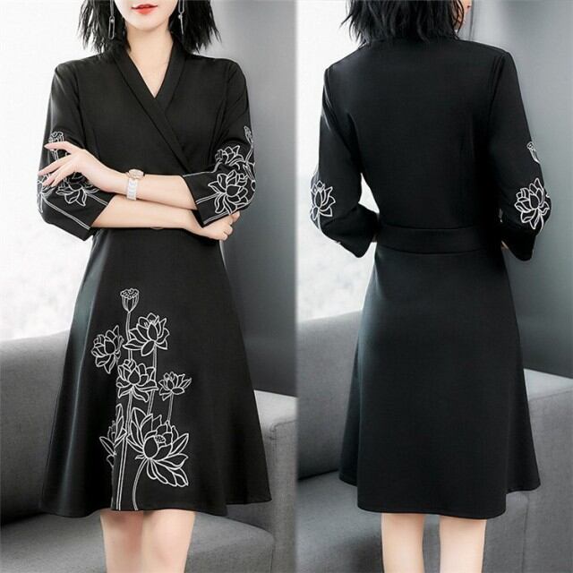 ワンピース レディース きれいめ 膝丈ワンピース 無地 上品 シャツワンピース 大きいサイズ 長袖 結婚式ドレス ロング 通勤