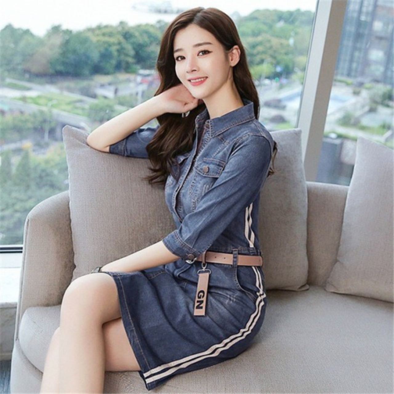 デニムワンピース ワンピ レディース 無地 シャツワンピース 大きいサイズ 通勤 オフィス OL きれいめ レディ ースタイトワンピース 長袖春秋 ベルト付き