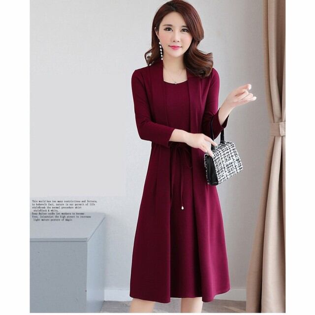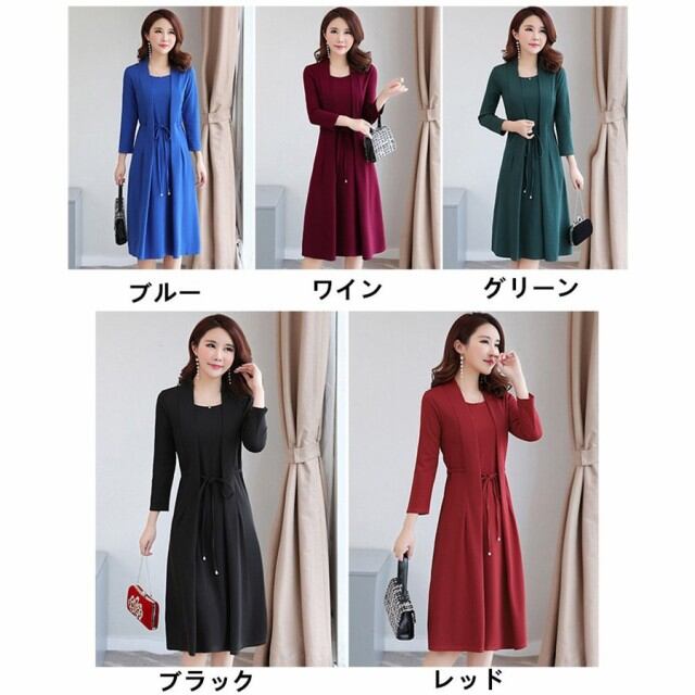 ワンピース レディース ワンピース チュニック ひざ丈 長袖 無地 OL 通勤 エレガント ワンピース 秋新作