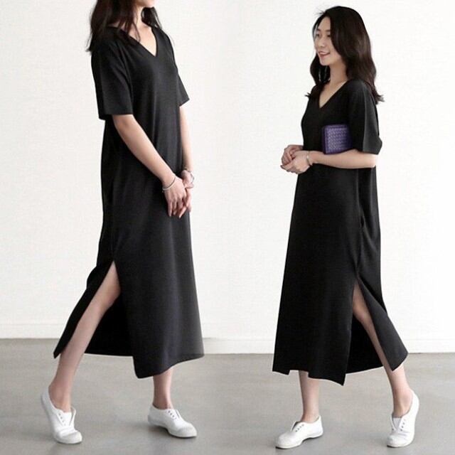 ワンピース レディース 夏 半袖ワンピース 無地 シンプル 韓国風 ロングワンピース ゆったり ロングTシャツ ワンピース スリット