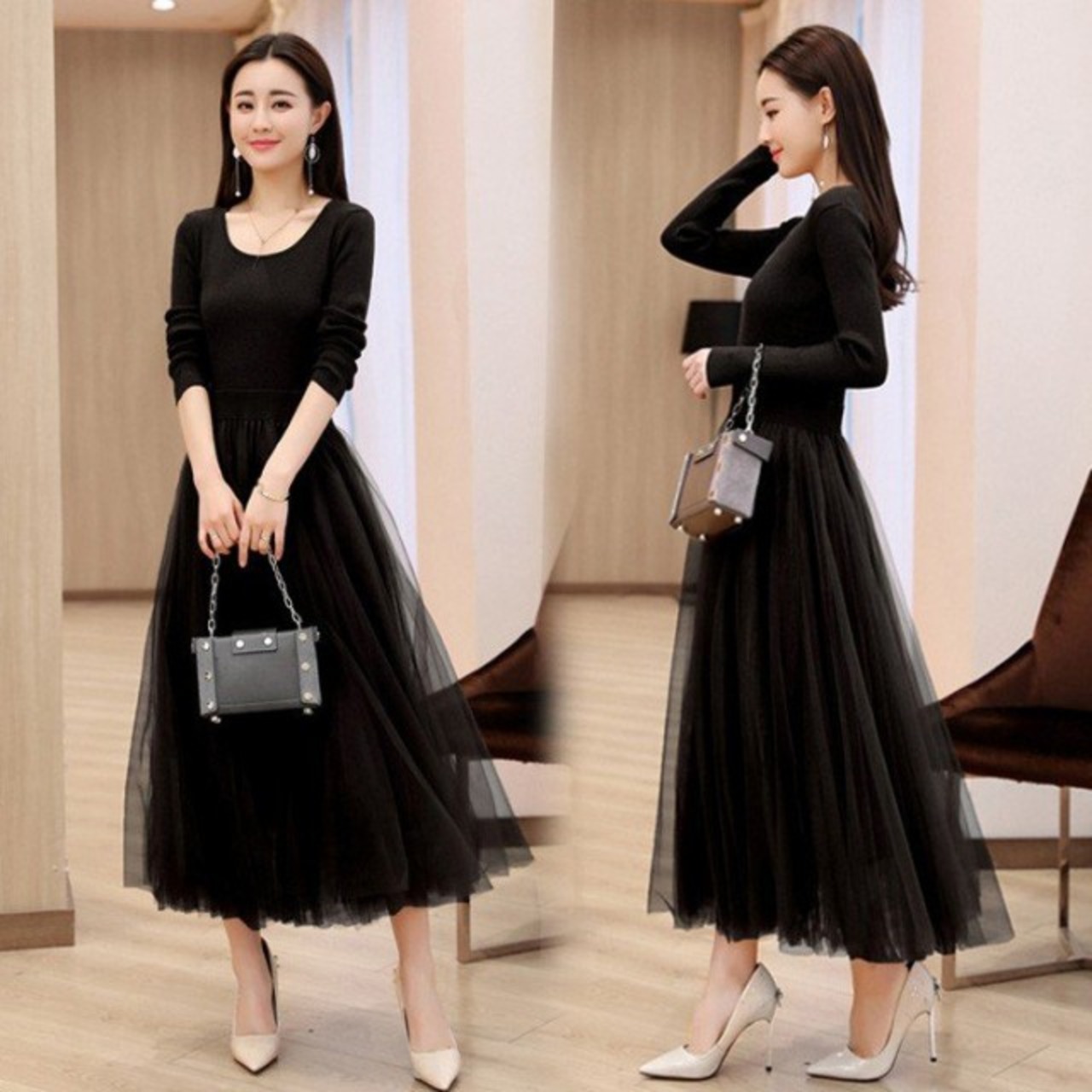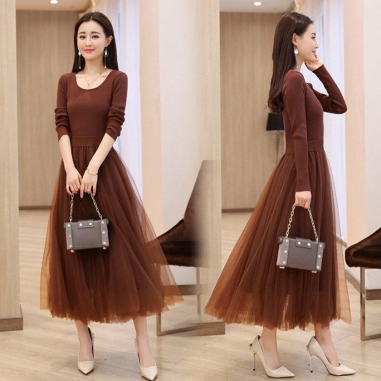 連携キーワード:ワンピース レディース 40代 秋冬 マキシワンピースドレス 長袖 きれいめ チェールスカート プリーツワンピ Uネック 結婚式ドレス パーティードレス 2色