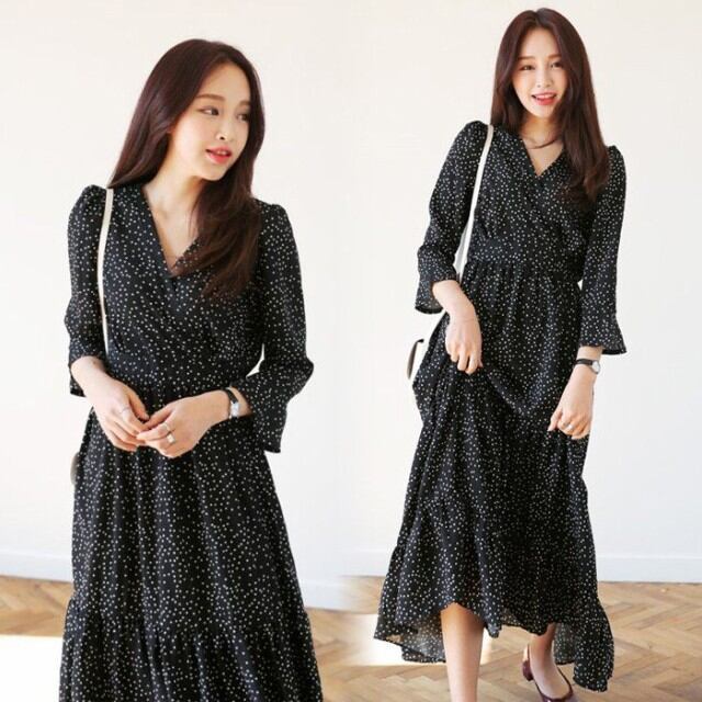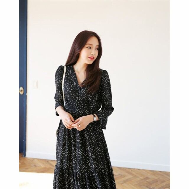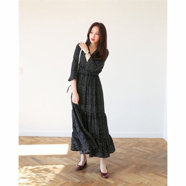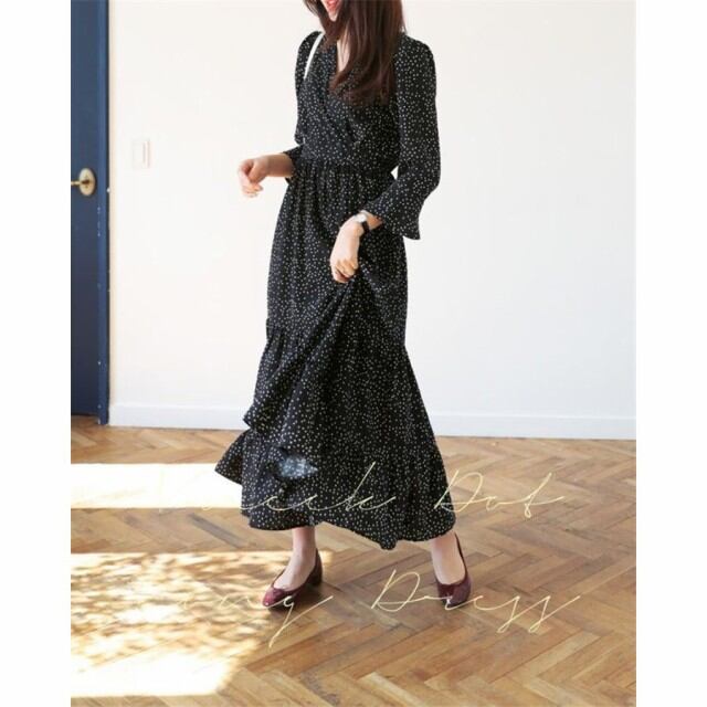 連携キーワード:ワンピース レディース 40代 春夏 きれいめ マキシ丈 ワンピース ドット柄 長袖ワンピース Vネック 結婚式ドレス フレア 通勤 ロング 姫 大人 上品 パーティー