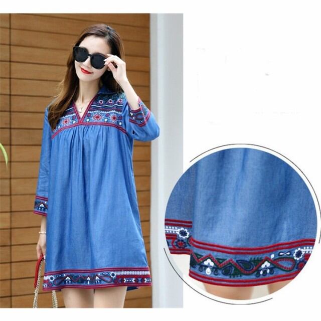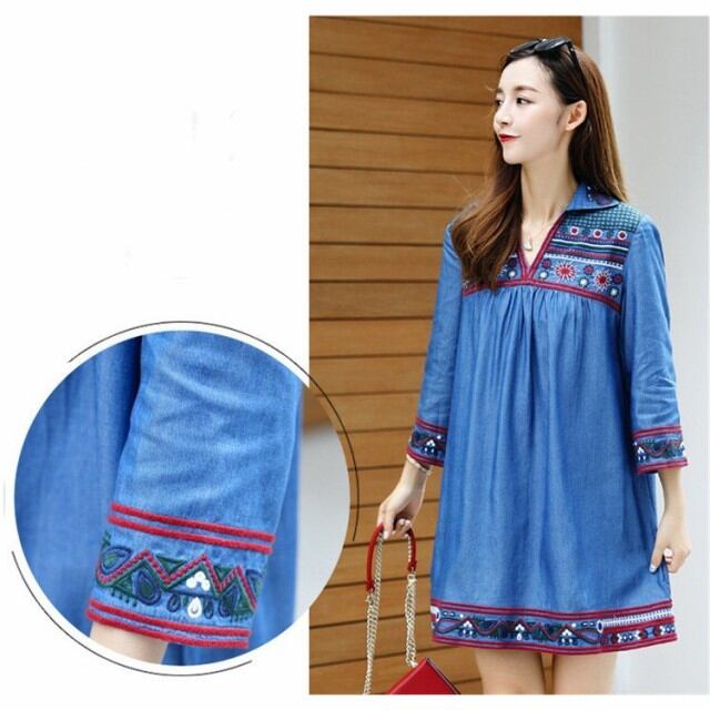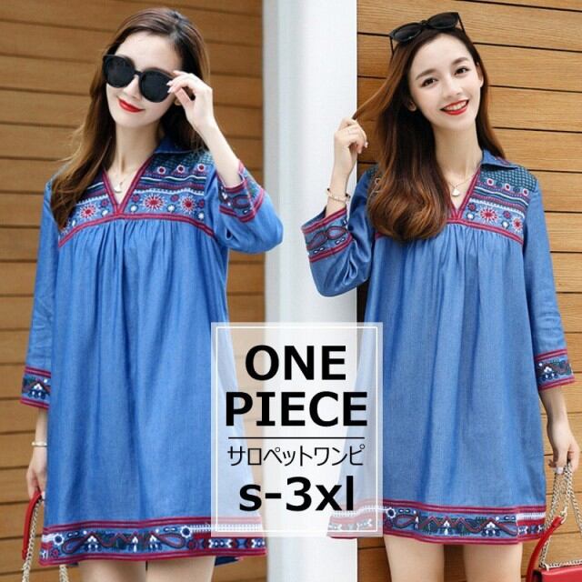 ワンピース レディース デニム 春 夏 膝丈 大きいサイズ 着痩せ デニムワンピース ゆっくり