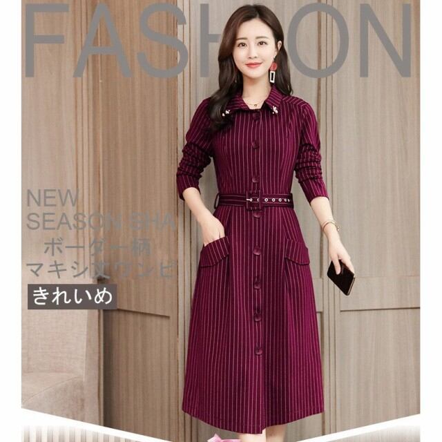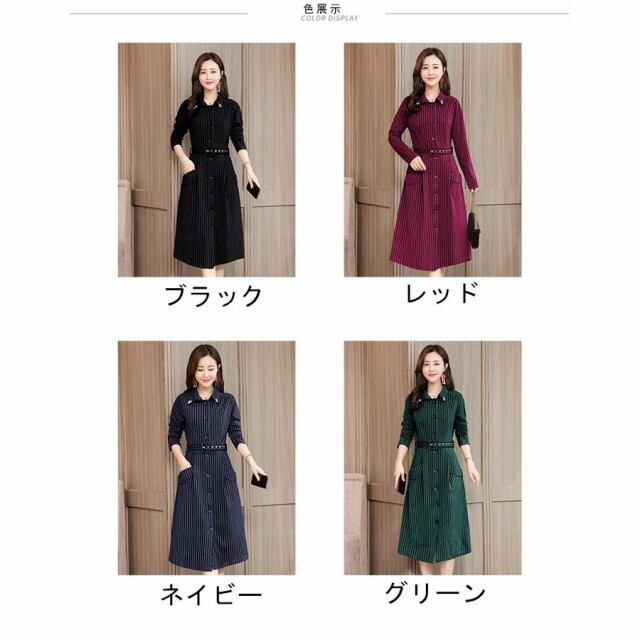 連携キーワード:ワンピース レディース 40代 秋冬 きれいめ マキシ丈ワンピース 大きいサイズ ボーダー柄 シャツワンピース 長袖 Aライン 結婚式ドレス 通勤 ロング 着痩せ 4色
