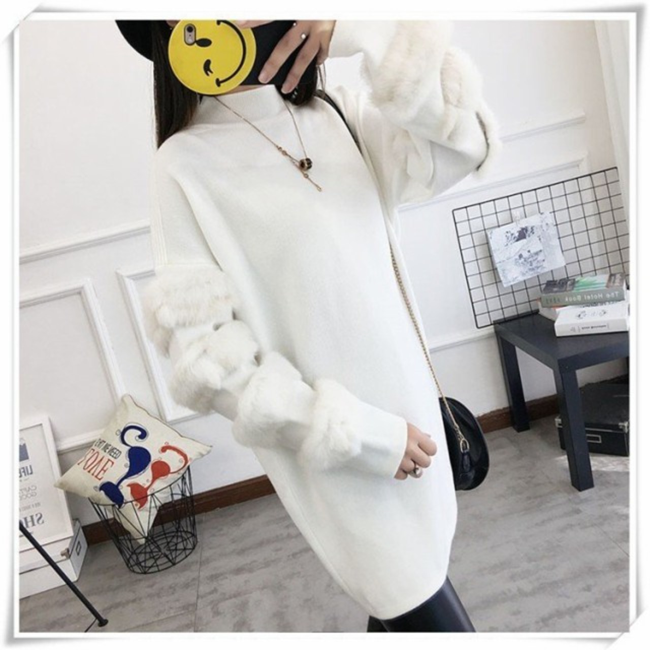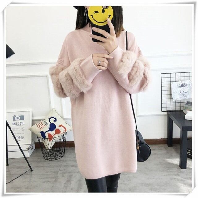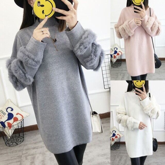 連携キーワード:ニットワンピース レディース 秋冬 40代 トップス 長袖 ニットソー フェイクファー付き ロング ニットワンピース トップス セーター 着痩せ 4色