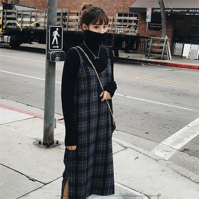 連携キーワード:ワンピース レディース 40代 秋冬 マキシ丈ワンピース セットアップ チェック柄 ラシャ 長袖 ニットセーター ハイネック 通勤 上品 ワンピース ロング丈 着痩せ