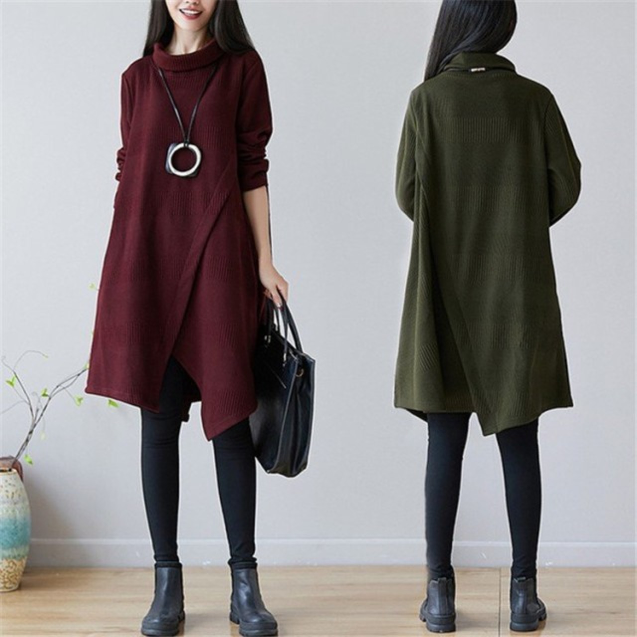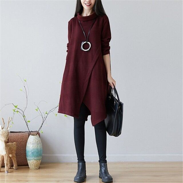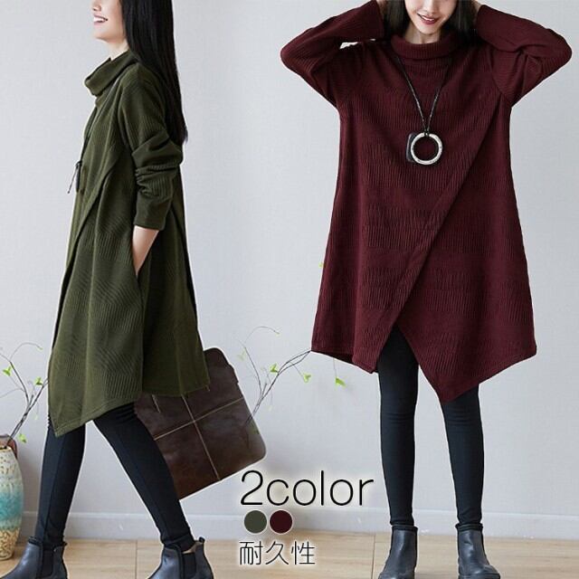 ワンピース チュニック レディース 体型カバー ニットワンピース ニット ロング 長袖 洗えるニット ゆったり トップス