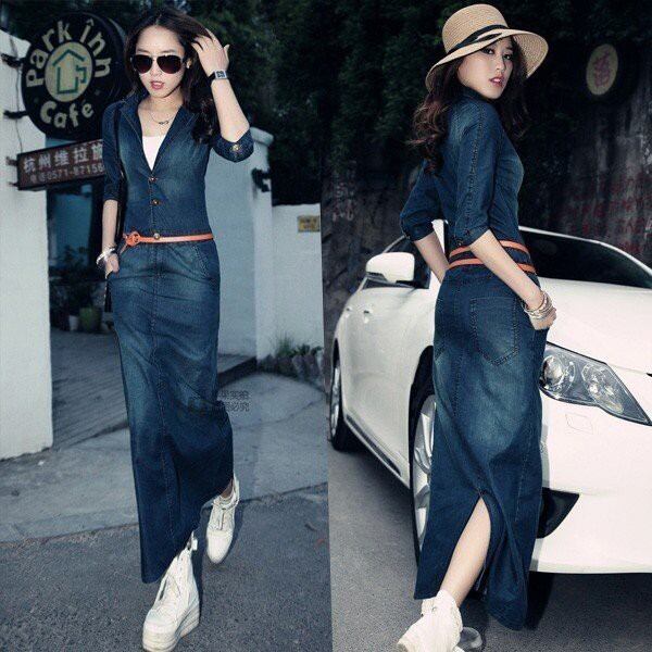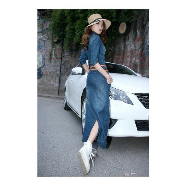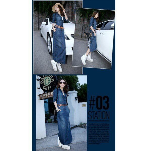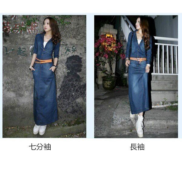 デニムワンピース 秋ワンピ 薄手 デニムシャツワンピース デニムワンピ シャツワンピ マキシワンピース カジュアルワンピ マキシ丈 ベルト付き