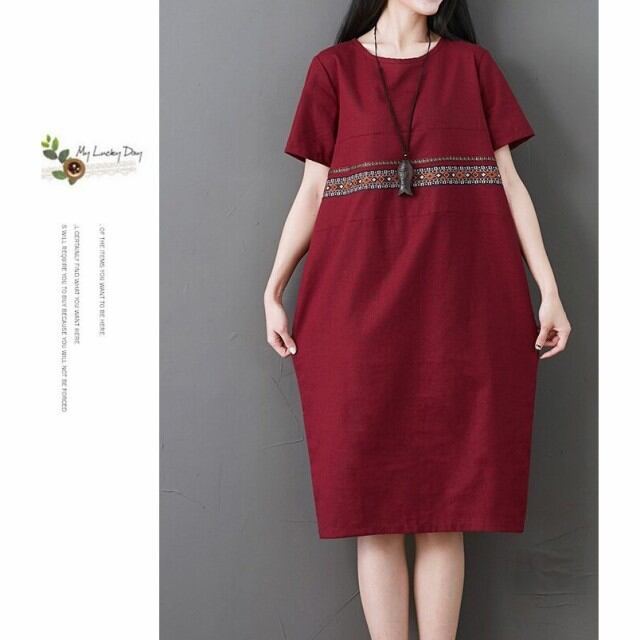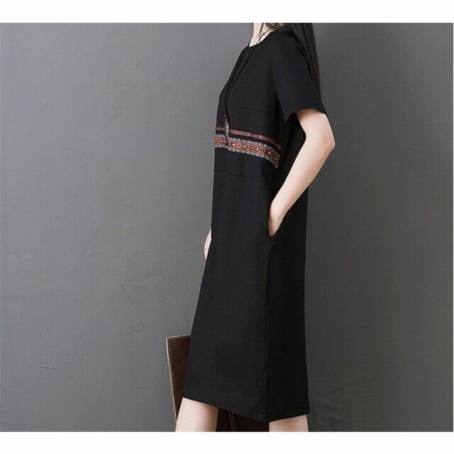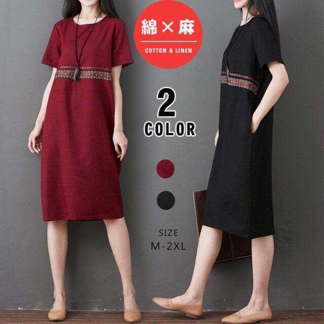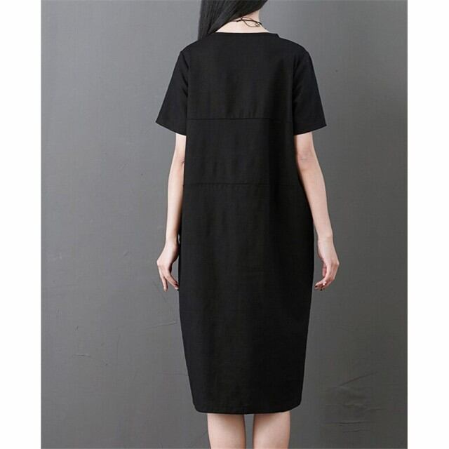 チュニックワンピース 綿麻 レディースワンピ エプロン無地 綿麻ワンピ チュニック ワンピ 通勤 オフィス OL きれいめ レディース短袖30代40代50代