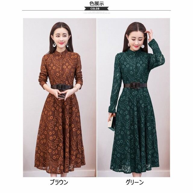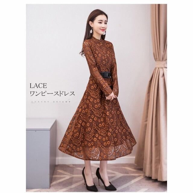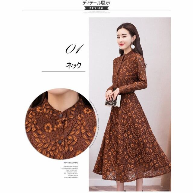 連携キーワード:ワンピース レディース 40代 春秋 きれいめ マキシ丈ワンピース 上品 長袖 総レースワンピース 花柄 結婚式 ドレス お出かけ 着痩せ ロング 通勤 オシャレ 2色