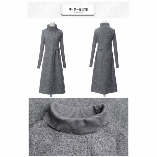 連携キーワード:ワンピース レディース 40代 秋冬 きれいめ マキシ丈ワンピース 無地 ニット切り替え ラシャ ワンピース 長袖 ハイネック 結婚式ドレス 通勤 ロング 4色