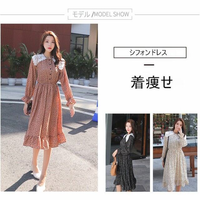 連携キーワード:ワンピース レディース 40代 春夏 きれいめ マキシ丈ワンピース ドット柄 シフォン 長袖ワンピース レース 姫 フレア 結婚式ドレス 通勤 ロング 大人 上品 3色