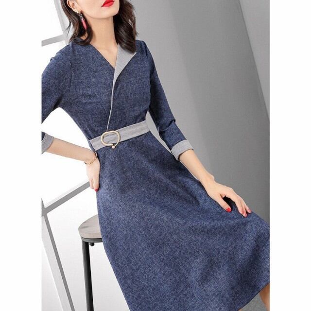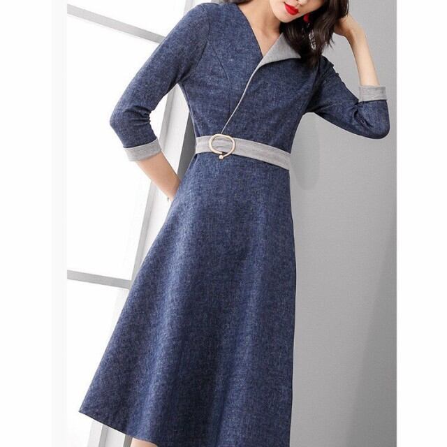 連携キーワード:ワンピース レディース 40代 春 膝丈ワンピース Aラインワンピース 七分袖 vネック上品 きれいめ ロング丈 結婚式 ドレス 通勤 着痩せ おしゃれ
