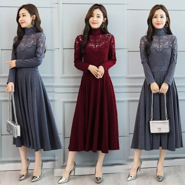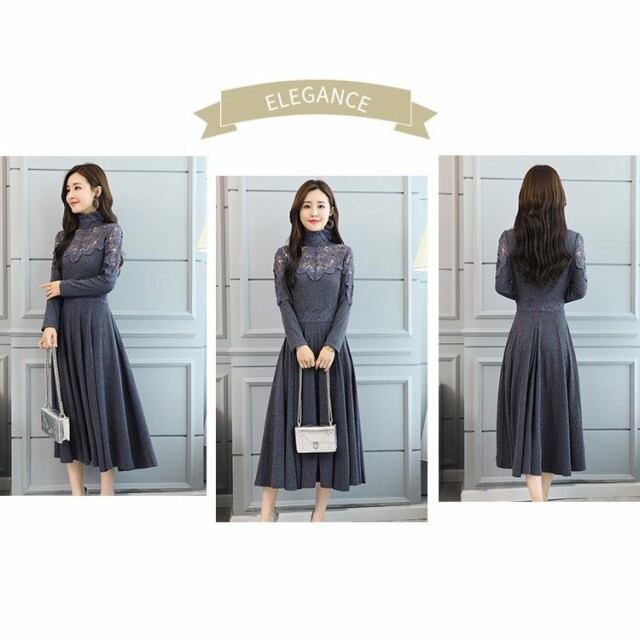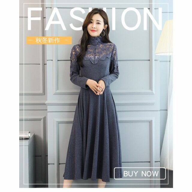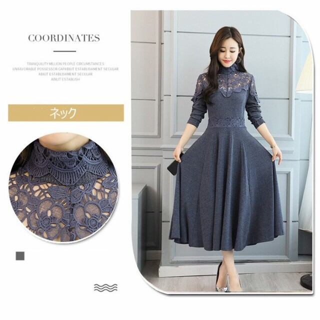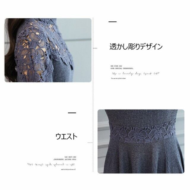 連携キーワード:ニットワンピース レディース 40代 秋冬 きれいめ マキシワンピース レース 透かし彫り ニットワンピース ハイネック 長袖 結婚式ドレス 通勤 ロング 着痩せ 2色