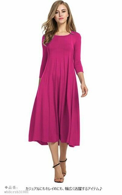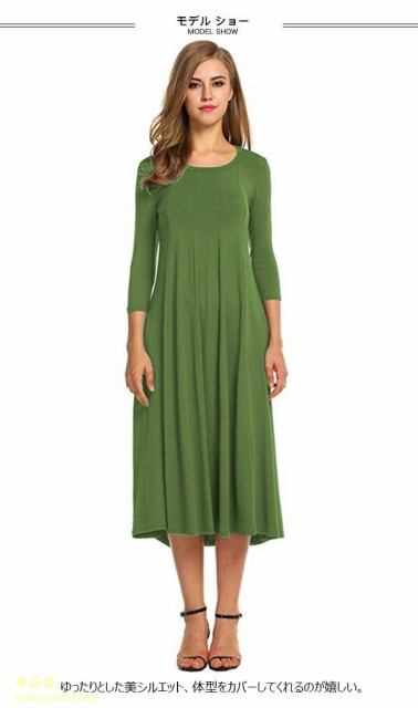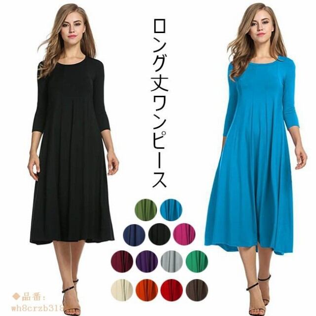ワンピース レディース 無地 ロング丈 ゆったり 長袖 ラウンドネック 夏 春 ミモレ丈 秋 2018春新作 オールインワン