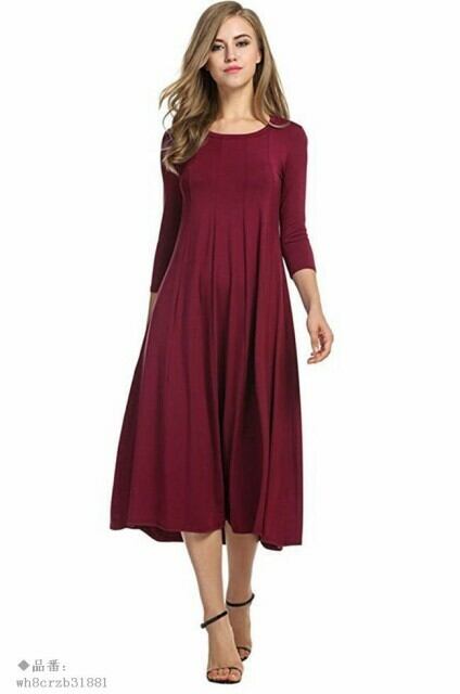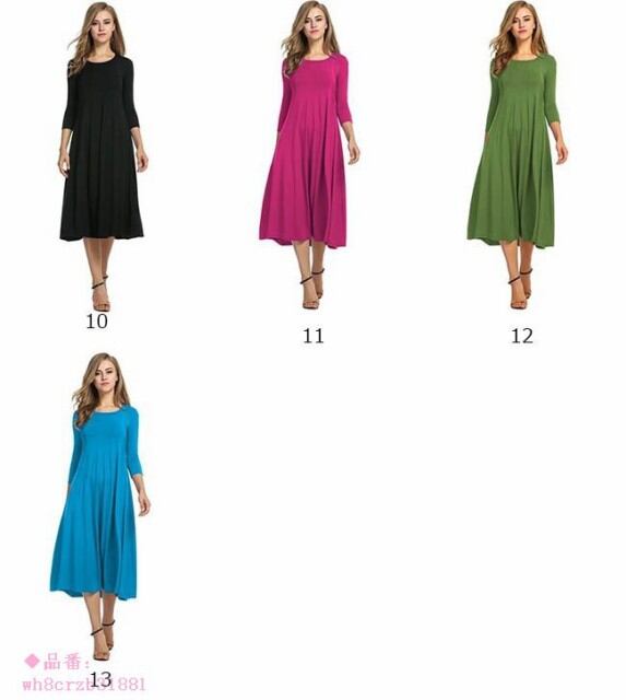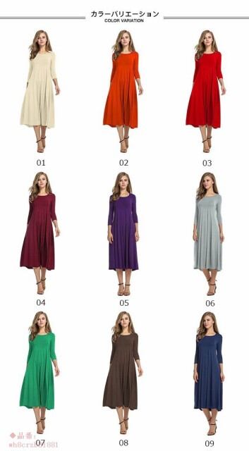 ワンピース レディース 無地 ミモレ丈 ロング丈 長袖 ゆったり ラウンドネック オールインワン 春 夏 秋 2018春新作