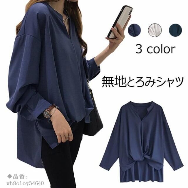 とろみシャツ レディース 無地 長袖 大きいサイズ ゆったり カジュアル オシャレ トップス 春 夏 秋 2019春新作