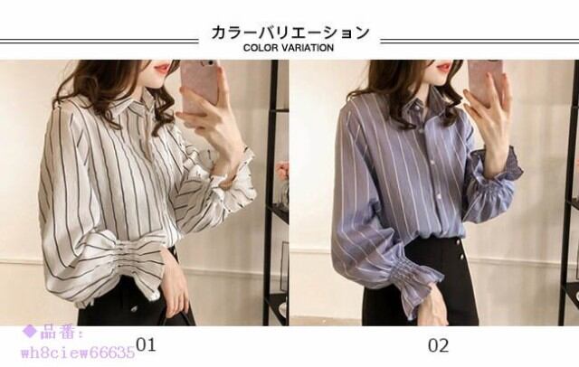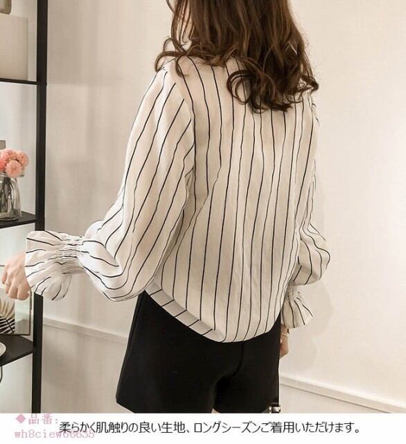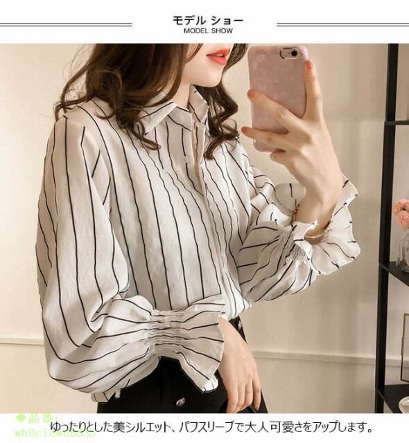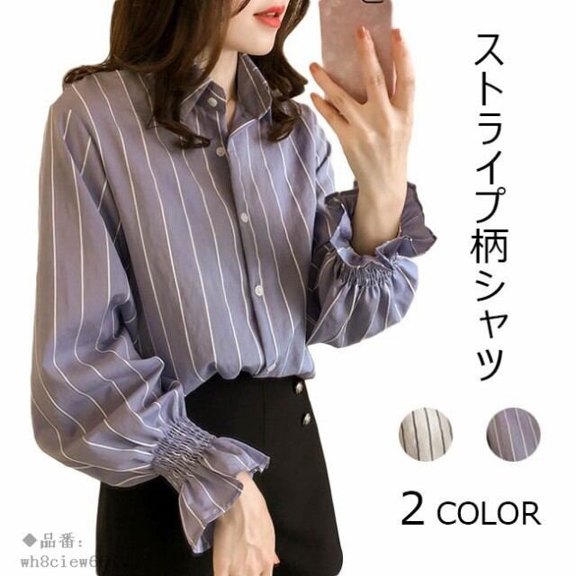 シャツ レディース ストライプ柄 長袖 パフスリーブ ゆったり ブラウス トップス 秋 冬 春 2019年春新作