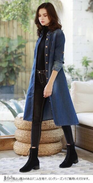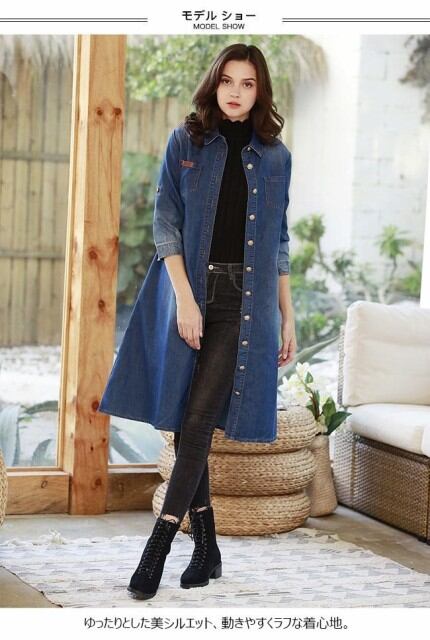 デニムコート レディース 春コート スプリングコート ロング丈 無地 7分袖 ゆったり オシャレ アウター 春 夏 秋 2019春新作