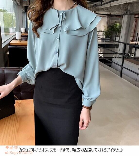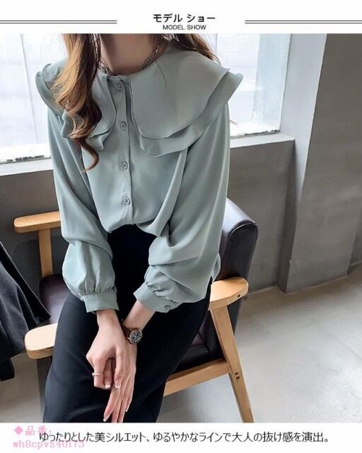 とろみシャツ レディース ブラウス フリル 長袖 パフスリーブ 無地 ゆったり トップス 秋 冬 春 2019年春新作