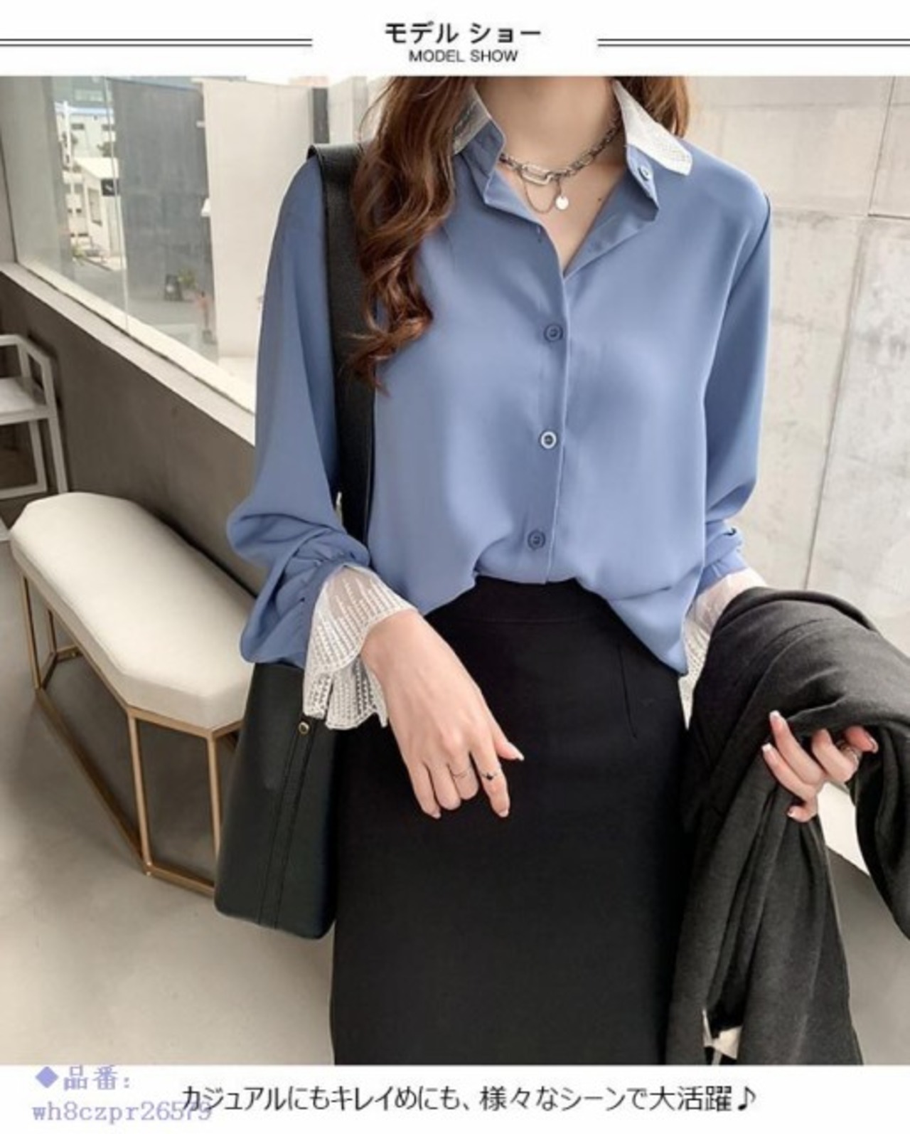 とろみシャツ レディース レース 夏 無地 春 2019春新作 長袖 カジュアル オシャレ 大きいサイズ ゆったり 秋 トップス