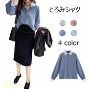 とろみシャツ レディース レース 無地 長袖 大きいサイズ ゆったり カジュアル オシャレ トップス 春 夏 秋 2019春新作
