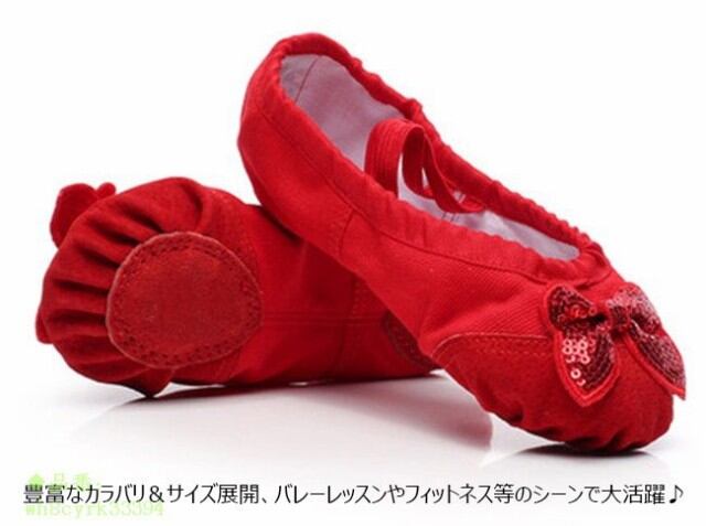 ダンスシューズ キッズ バレーシューズ 可愛い シューズ ヨガ ガールズ リボン スパングル 練習用 フィットネス 布製 靴 子供 キャンバス地 ダンス