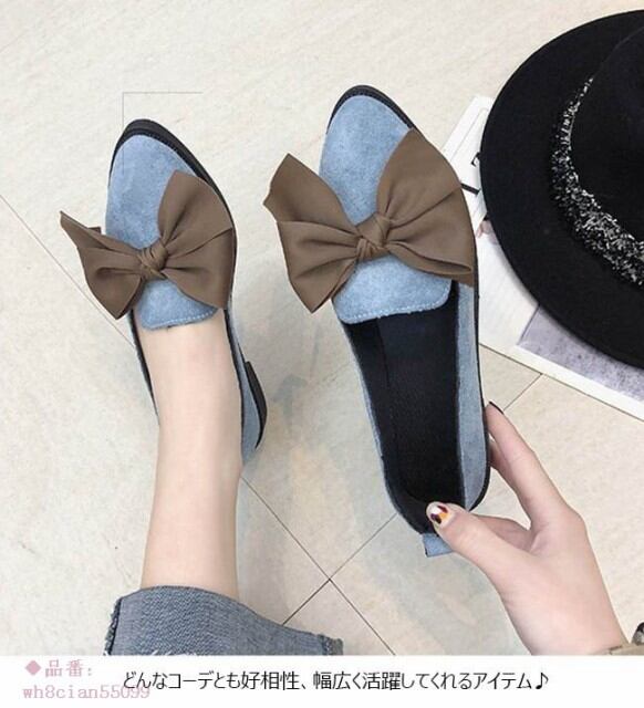 パンプス レディース ヒョウ柄 オシャレ 靴 レオパード 春 スエード調 リボン 秋 夏 ローヒール 2018春新作 シューズ ポインテッドトゥ カジュアル