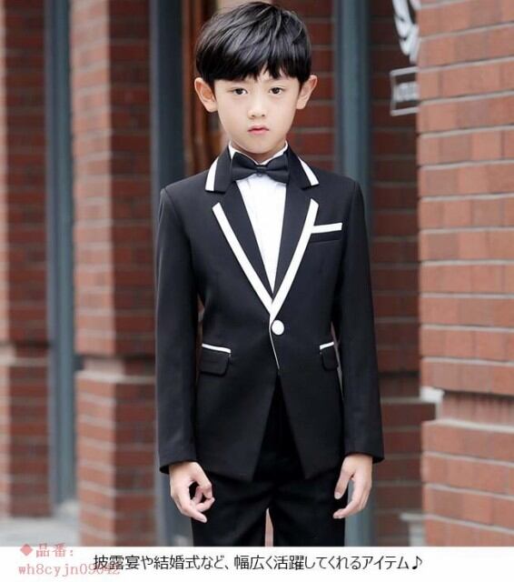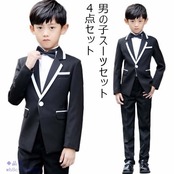 4点セット キッズ 男の子 スーツセット スーツジャケット スーツパンツ シャツ リボン 無地 セットアップ 披露宴 発表会 演出 結婚式 春 夏 秋 2018春新作