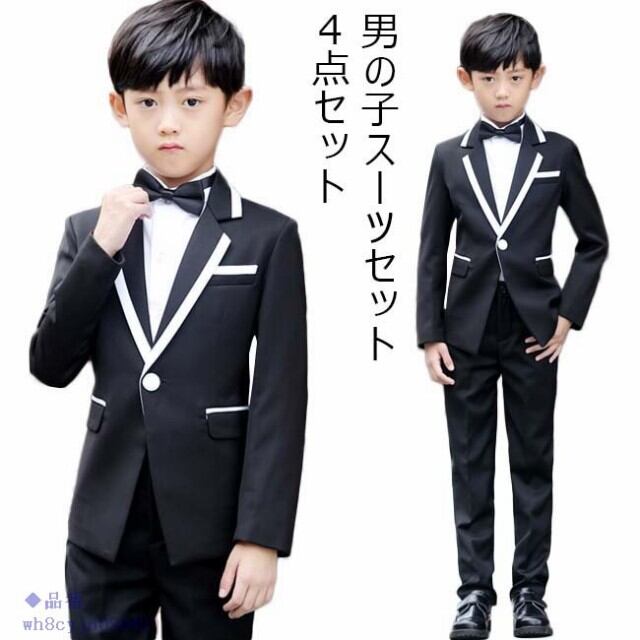 4点セット キッズ 男の子 リボン 春 結婚式 スーツジャケット 披露宴 無地 演出 シャツ 夏 発表会 秋 2018春新作 セットアッ