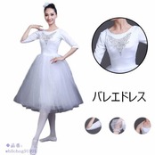 バレエドレス レディース バレエ衣装 ダンス ロング丈 ふんわり メッシュ ワンピース オールインワン コンクール 発表会 体操 練習着 忘年会