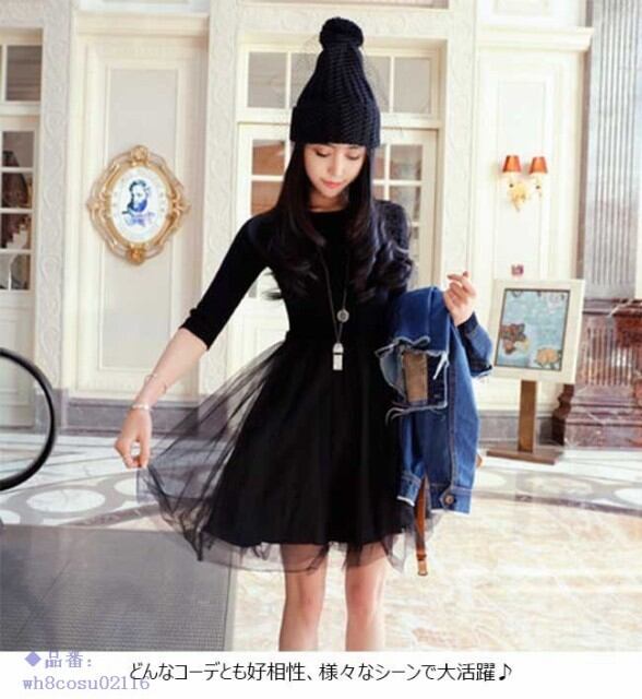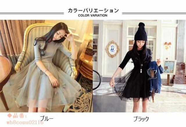 ニットワンピース レディース 無地 5分袖 メッシュスカート ショート丈 膝丈 リブ編み オールインワン 春 夏 秋 2018春新作