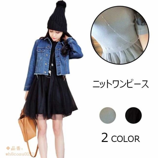 ニットワンピース レディース 無地 リブ編み 春 夏 ショート丈 5分袖 オールインワン 膝丈 秋 メッシュスカート 2018春新作