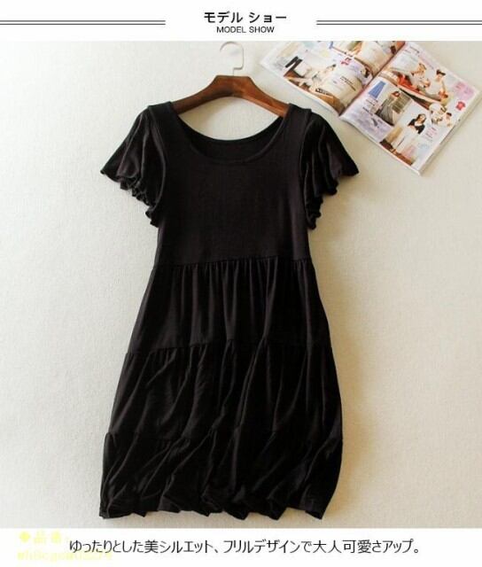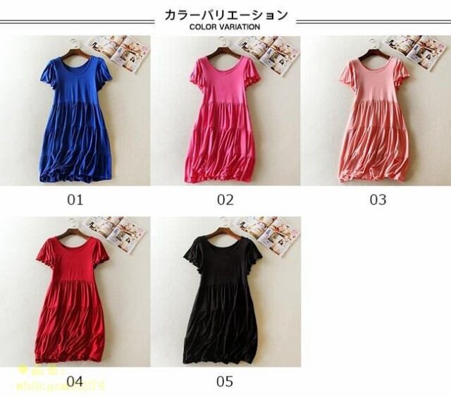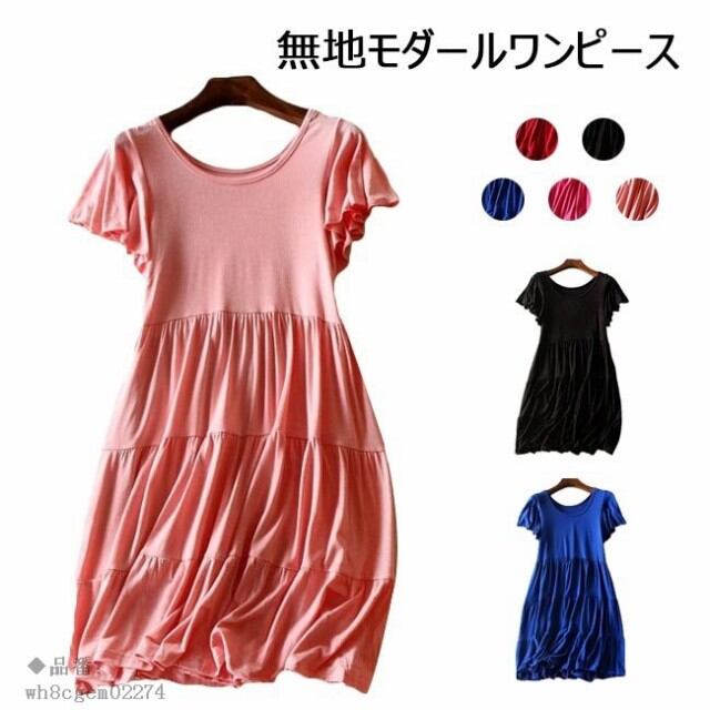 ワンピース レディース 無地 モダール 膝丈 半袖 ハイウエスト シンプル ゆったり オールインワン 春 夏 秋 2019春新作