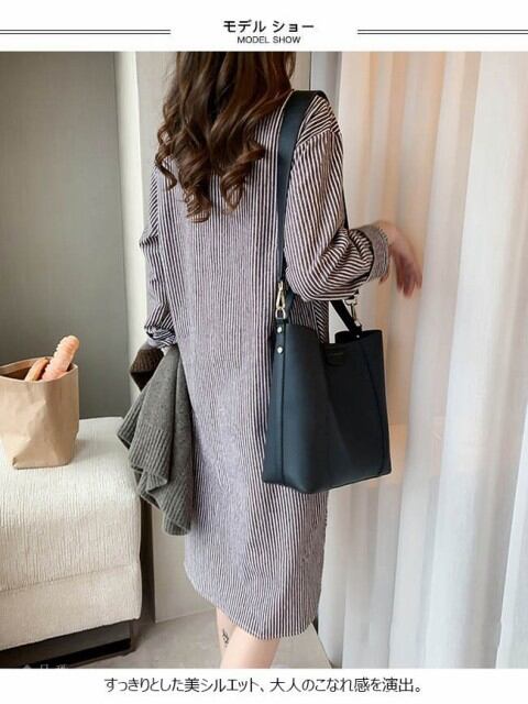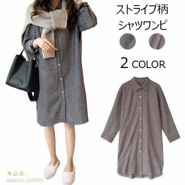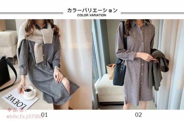 シャツワンピ レディース 膝丈 長袖 ストライプ柄 ゆったり ワンピース トップス アウター 春 夏 秋 2018春新作