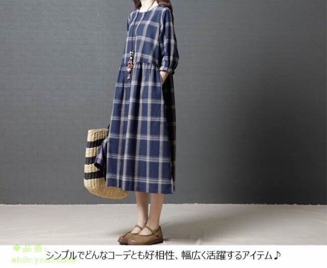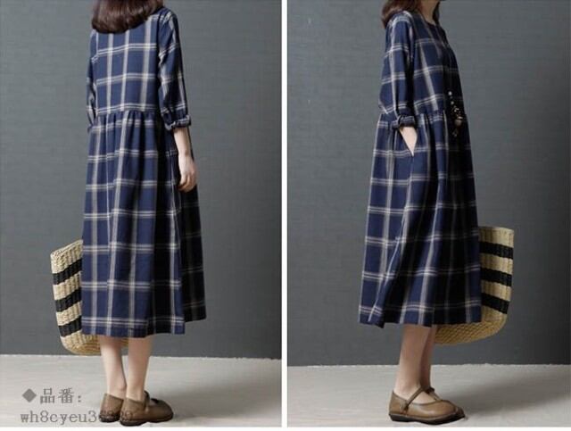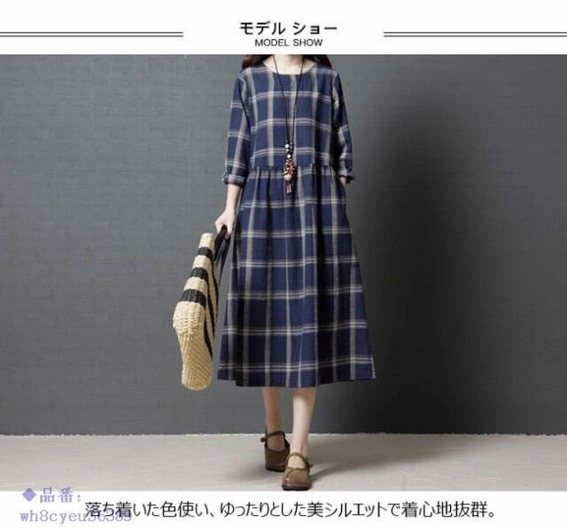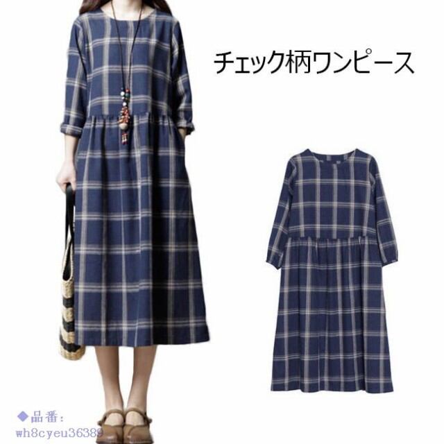 ワンピース レディース チェック柄 ロング丈 オールインワン 2018春新作 夏 長袖 秋 春 ミモレ丈 ゆったり